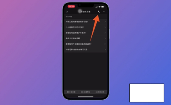 4、进入帮助与反馈页面后,点击页面右上角的【工具图标】。