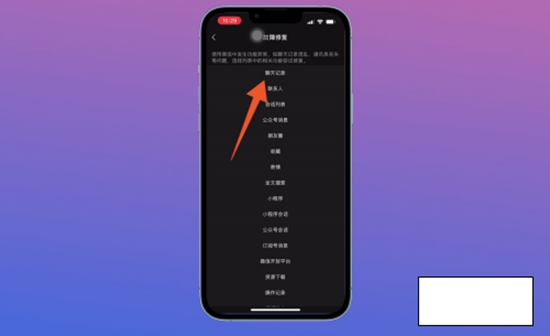 6、打开故障修复页面后,选择并点击里面的【聊天记录】。